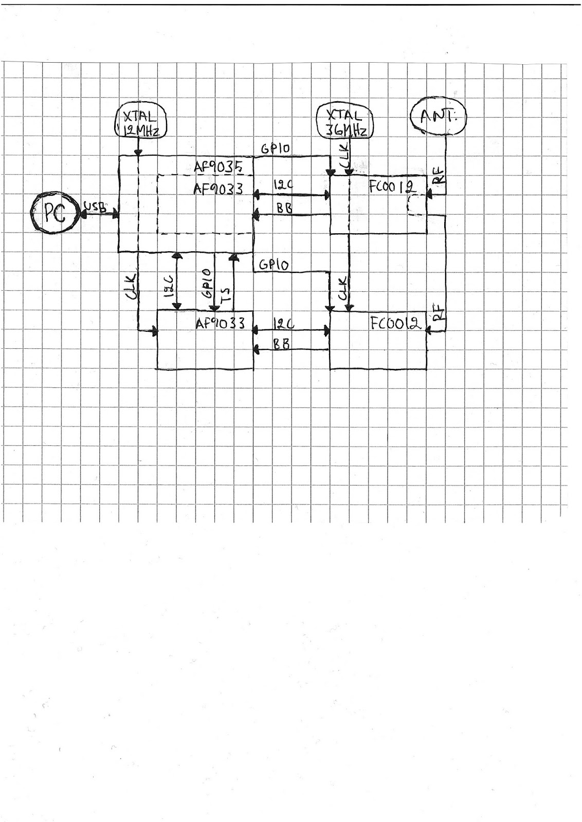IR-receiver is connected to AF9035. First FC0012 is connected to the AF9035 and second one to AF9033, both TS and I2C buses.